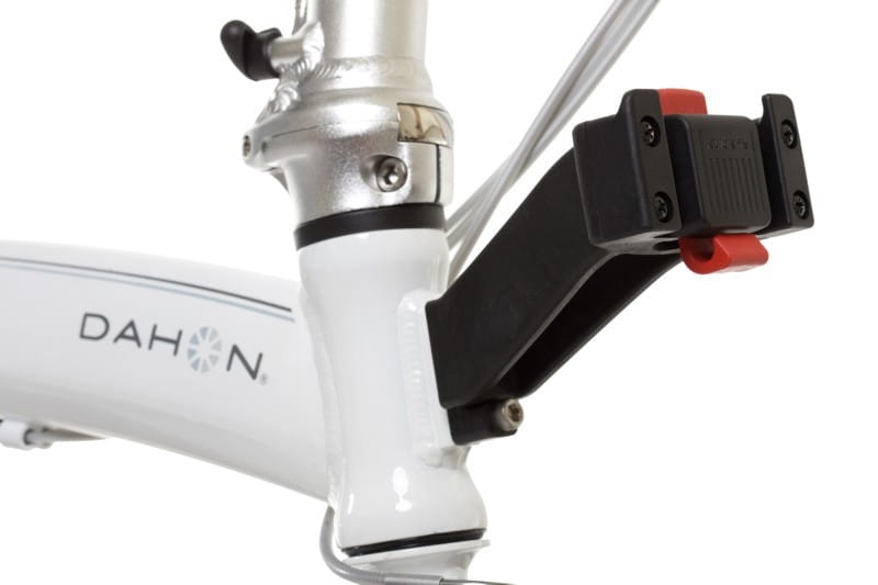 Adapter Dahon mocujący akcesoria Klickfix wyłącznie do rowerów Dahon i Tern wyposażonych w specjalną płytkę na główce ramy. Wyjątkowe, bardzo wygodne rozwiązanie do montażu przedniego bagażnika lub kosza. Nie obciąża kierownicy, nie przeszkadza w czasie jazdy ani przy składaniu roweru.